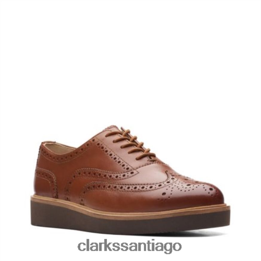 Clarks clarks brogue glickly cuero tostado oscuro ZHDD043973 mujer cuero bronceado oscuro