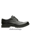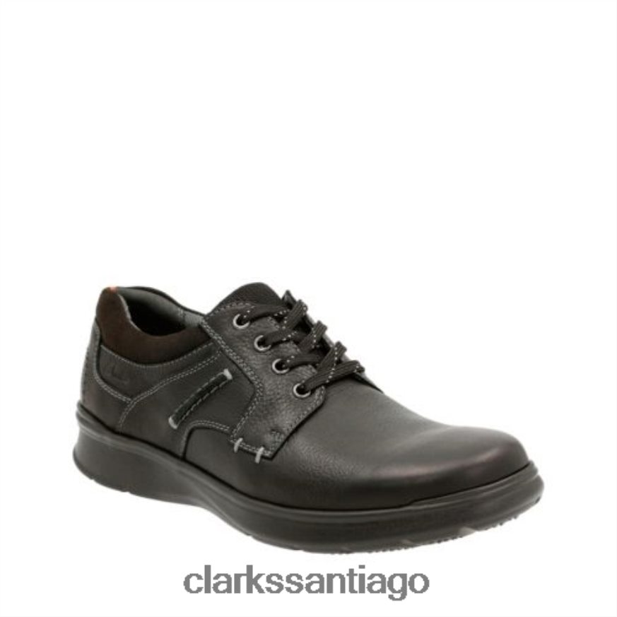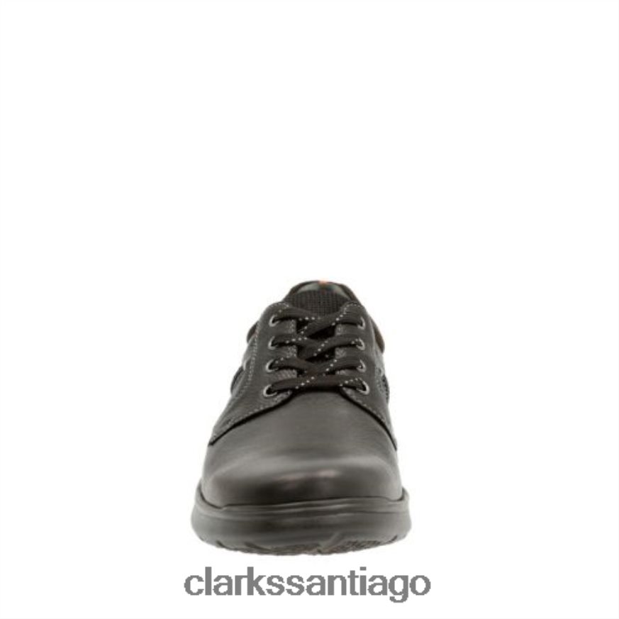 Este duradero zapato con cordones para hombre de la colección Clarks funciona bien dentro y fuera de servicio. El cotrell liso está confeccionado en cuero negro liso y presenta un cojín extraíble suave con plantilla ortholite. Úselo con pantalones casuales como caquis y jeans.
