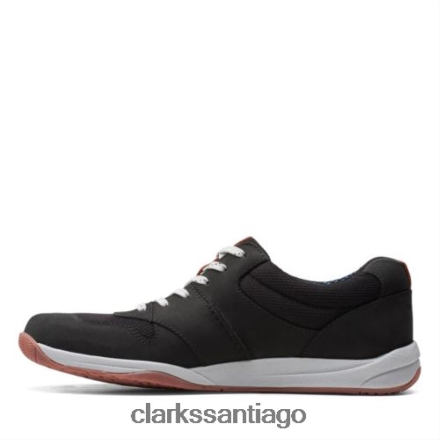 de la colección Clarks, un nuevo giro en la tendencia athleisure con una estética fresca y elaborada. Langton Race en nubuck negro ve inserciones de malla modernas y acolchado estratégico en la parte superior inspirada en las zapatillas de deporte con forros de ortholite transpirables que absorben la humedad en el interior. un perfil de suela diseñado coloca la amortiguación donde más se necesita, mientras que la entresuela está hecha de EVA liviana y se asienta sobre una suela de goma para mayor durabilidad y resistencia al deslizamiento. un informal moderno escrito con la letra de Clarks.