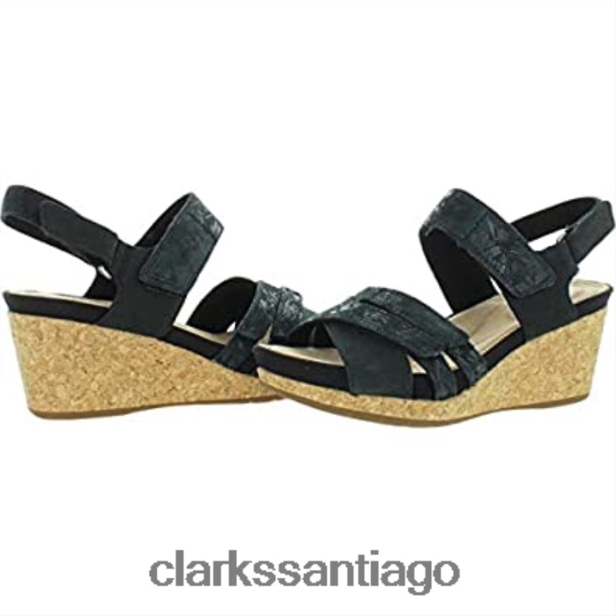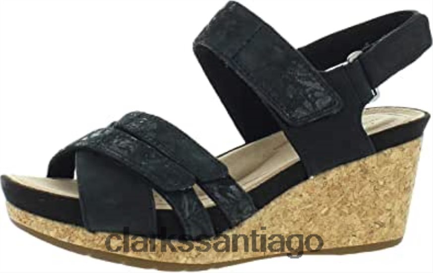 Clarks Sandalia de cuña clarks un capri walk lea combi de nobuk negro para mujer ZHDD04411 mujer combi cuero nobuk negro
