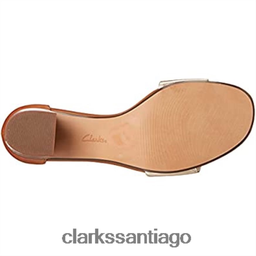 - la altura del tacón es de 2 1/2 pulgadas y el color es cuero metalizado/bronceado.